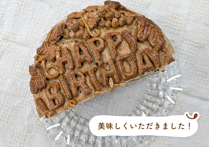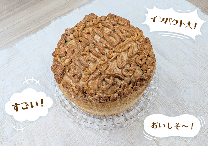 パンの表面に「HAPPY BIRTHDAY」などの言葉がそのまま焼き込まれているパン。