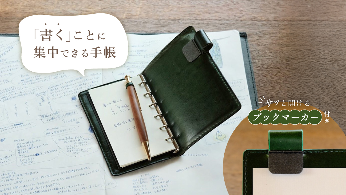 一般的な手帳にあるカードホルダーやポケットがついていないことによって、余計な段差や厚みがなく、書くときの違和感を軽減しています。