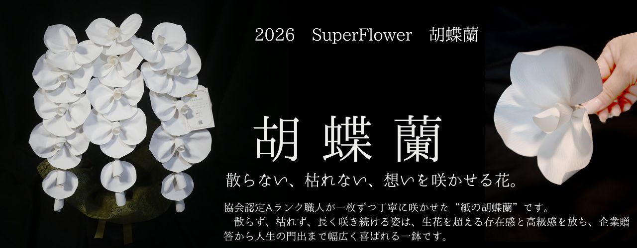開店・開業祝い、周年記念、昇進・就任祝いなど、格式ある場面でふさわしい華やぎを添えます。 「生花の胡蝶蘭が散った後もSuperFlowerだけが咲き続けていた」と、多くの贈り先に喜ばれる価値ある一鉢です。