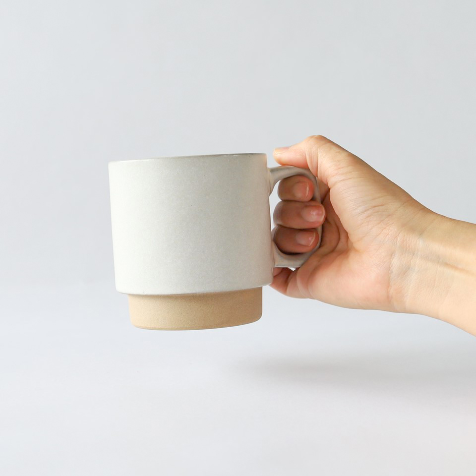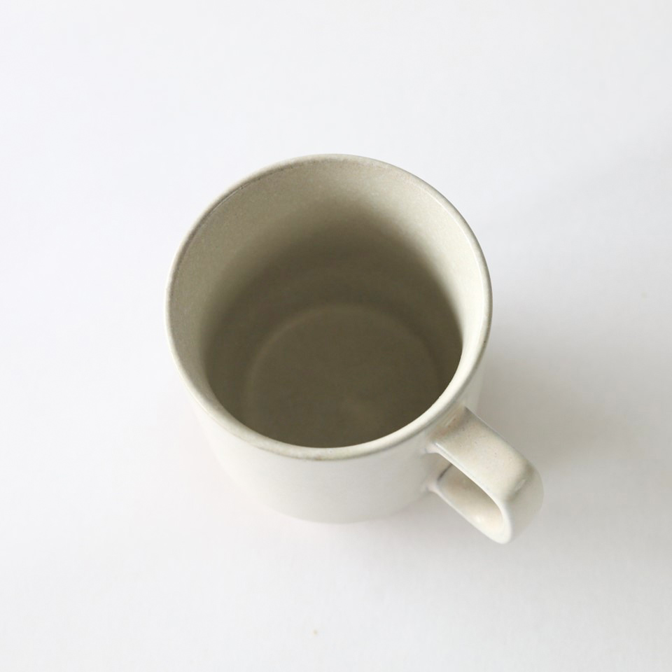 このマグカップの特徴は、スタッキングできることです。食器棚での収まりもよく安定感も抜群です。