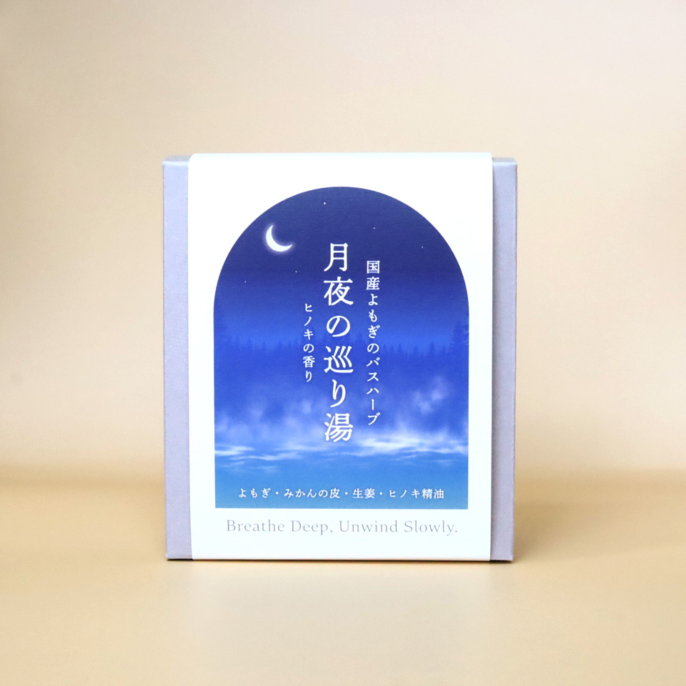 キラキラと光る透明ジェルと、木芯がパチパチと燃える音が人気の商品です。- 国産天然よもぎ入浴剤 月夜の巡り湯 よもぎバスハーブ