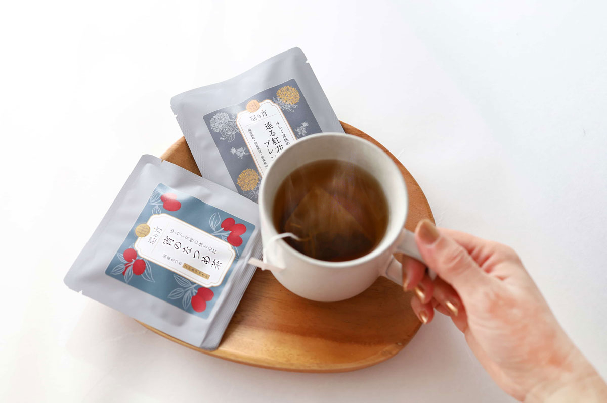 巡り宵がゆらぎ世代の為に作った「巡る紅花ブレンド茶」と「宵のなつめ茶」をメール便限定でお試しいただけます。