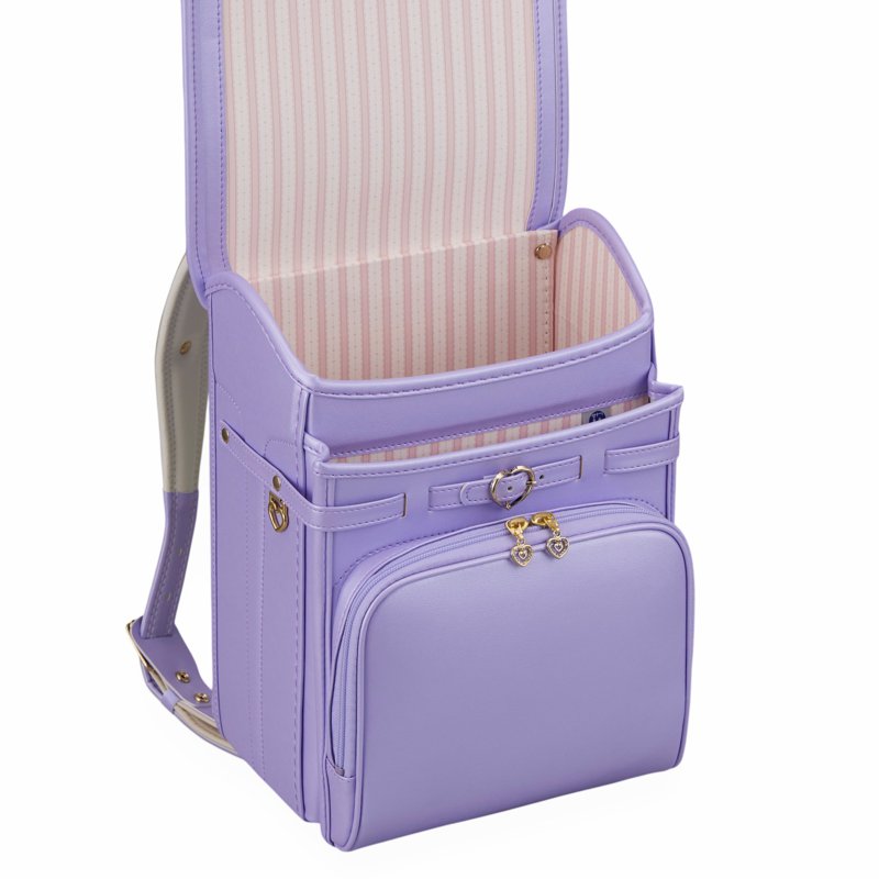 ■機能&特徴・キューブ型工法によりコンパクトなのにA4フラットファイル対応・マチ幅の大容量♪・ハート鋲と刺しゅうの小さなハートを施したカブセ♪・シンプルで使いやすいフロントポケット・オリジナルハート&ダイヤの大人っぽいストライプ柄の内貼り♪・クリスタルがきらりと輝くハート型ナスカン・両肩紐に防犯ブザーが付けられるハートカン付き♪・使い勝手のよいソフトハンドル♪・肩紐がアップして肩にフィットするウイング背カン搭載♪・ワンタッチ錠前♪・日本製♪