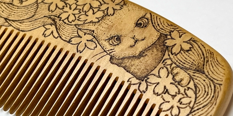 3人の作家様に櫛へ思い思いのネコを焦して描いて頂きました!