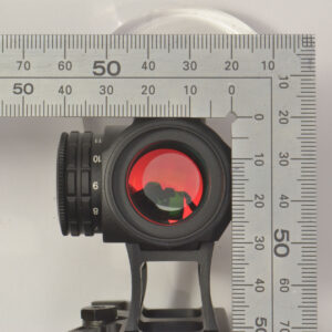 実はこのドットサイトは、ドット反射用レンズの前面に最初からレンズ保護用のスクリーンが備わっています。このプロテクターはそのスクリーンのさらに前方に厚2mmのポリカ板を追加してガードを固めるものです。外見にほとんど変化はありませんので、パッと見ではプロテクターを装着しているということはほとんどわかりません。