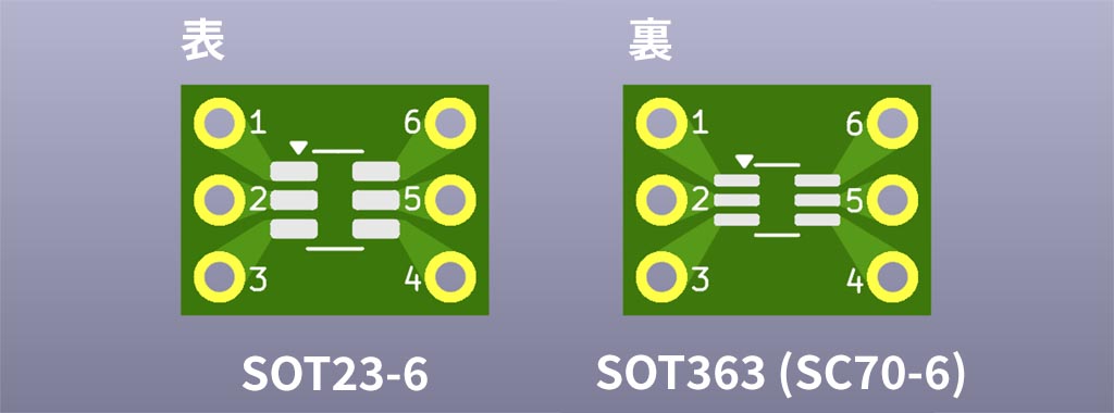 パッドからスルーホールまでの配線が太い、SOT23をDIPに変換する基板です。 裏面はSOT363(SC70-6)が実装できるようになっています。 DCDCコンバータやレギュレータ、オペアンプなど電流が大きな部品をピッチ変換するのに便利です。 🟡基板パターン 🟡仕様 実装可能パッケージ:SOT23-6 SOT363(SC70-6) 表面処理:鉛フリーはんだ 入り数:7個 🟡生い立ち ・配線の太いSOT23のDIP化変換基板が欲しくて作ってみた