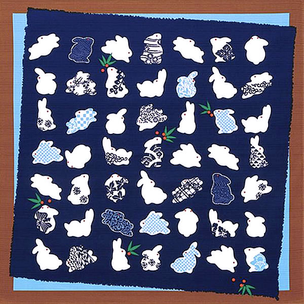 いろいろな動きのウサギの中には小紋柄のウサギもいる可愛らしい風呂敷です。