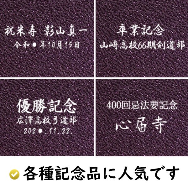 【加工方法につきまして】※刺繍・印刷ではございません●名入れ・家紋(6cm以上)・ロゴなど京都の金彩加工職人(伝統工芸士)が「型を作製」→「樹脂をヘラにて摺り込み」をして加工します。●家紋(3.5cm)紋章上絵師が「型を作製」→「刷毛にて樹脂または胡粉を摺り込み」をして加工します。小さい家紋や細かい部分がある家紋などの場合は筆にて上絵描きします※手法は家紋によって変わります※珍しい家紋や細かく手間の掛かる家紋の場合、別途「型製作料(別誂え料)¥2,750-(税込)」が掛かります(1回のご注文につき)。その場合、折り返しメールにてお知らせ致します●家紋入れ(白色)は¥3,300-(税込) ※金色は¥3,850-(税込)●オプションにて家紋の大きさは10cm・15cm可能家紋の位置や名入れ向きなどご指示にできるだけ対応いたします※「家紋の下に名前」など可能です◉校章・ロゴやマークなどについて最下部の「よくある質問」をお読みくださいませ。