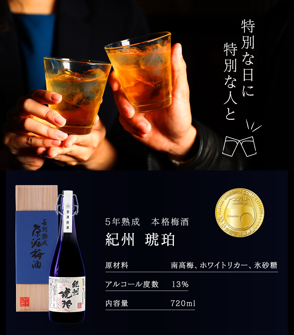 ※20歳未満のお客様のご注文はお断りさせていただきます。 名称 リキュール 内容量 720ml アルコール度数 13% 原材料 梅(紀州南高梅)、焼酎、氷砂糖 賞味期限 なし 保存方法 冷暗所に保存 備考 ※未成年者の飲酒は法律で禁じられております。 ※妊娠中や授乳期の飲酒は胎児、乳児の発育に悪影響を 与えるおそれがあります。