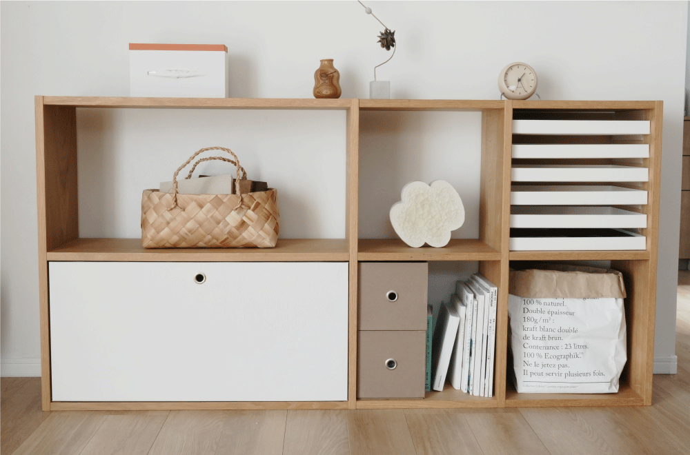すっきり整った空間に気軽に取り付けができ、生活感を隠して収納スペースを瞬時に整えてくれます。