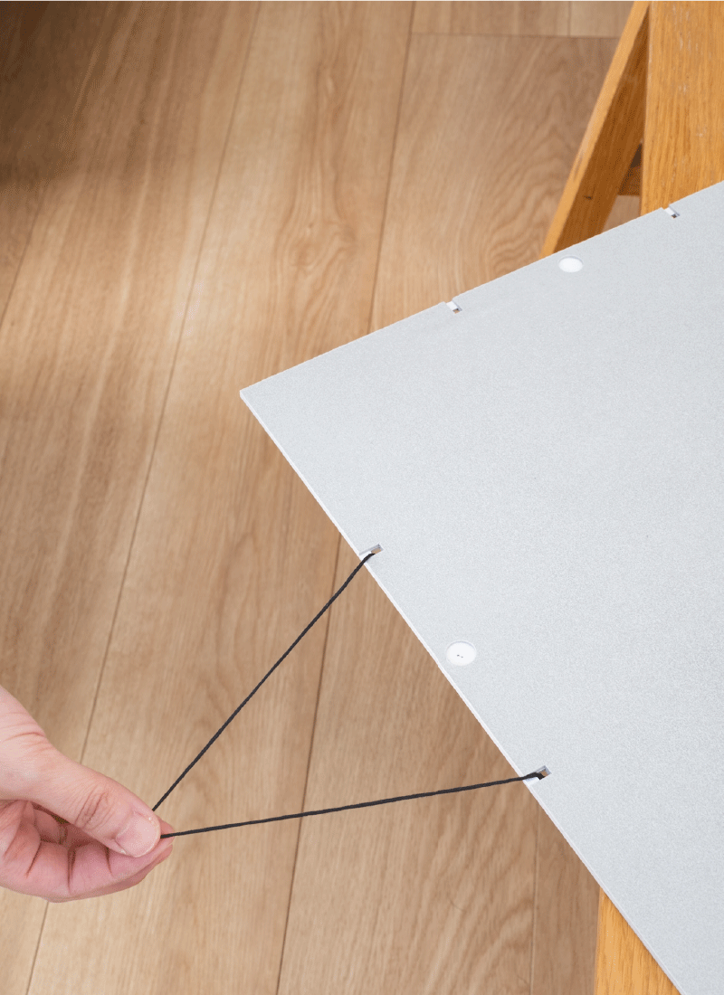 背面には画びょうと紐を通せる穴がついているので、飾るのも簡単。