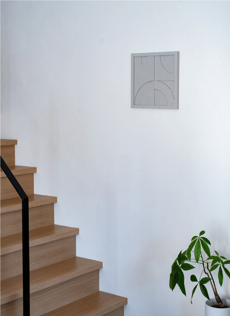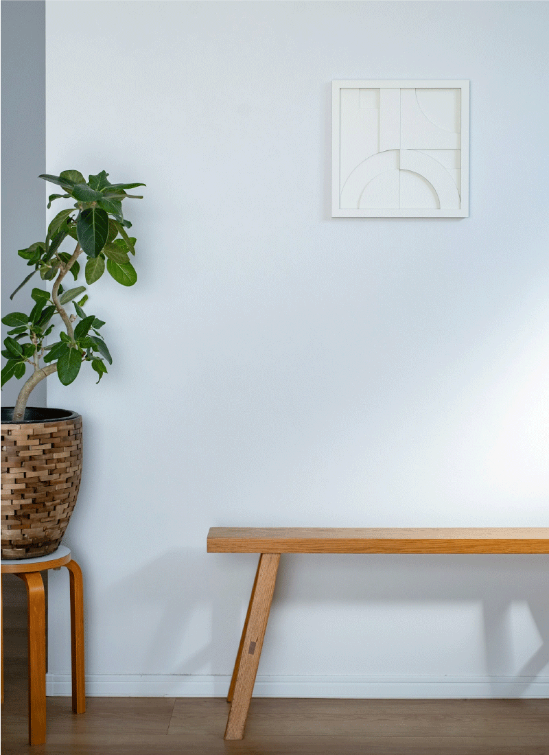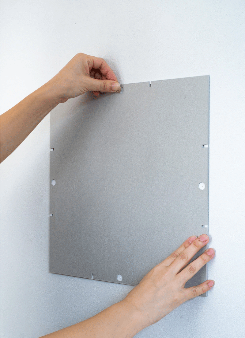 その過程で生まれる陰影も魅力のひとつ。枠には、マグネットを仕込みピタッと固定。コンクリート風の無機質な紙が存在感を格上げしてくれます。