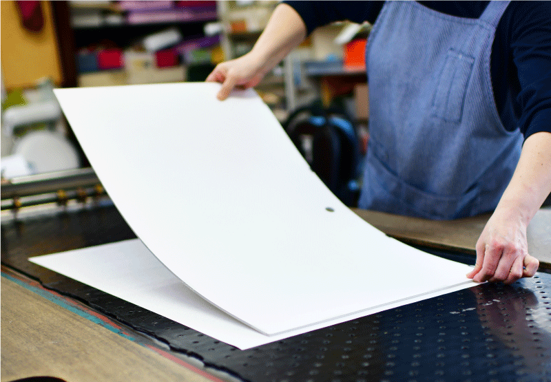 ※過度な気温や湿度の変化が重なると 紙の中に気泡が浮きでる場合がございますが、ご家庭のアイロンで修復することが可能です。紙を一枚敷き、浮いている箇所とその周辺に低温でアイロンをかけた後さらに手でしっかり撫でてください。