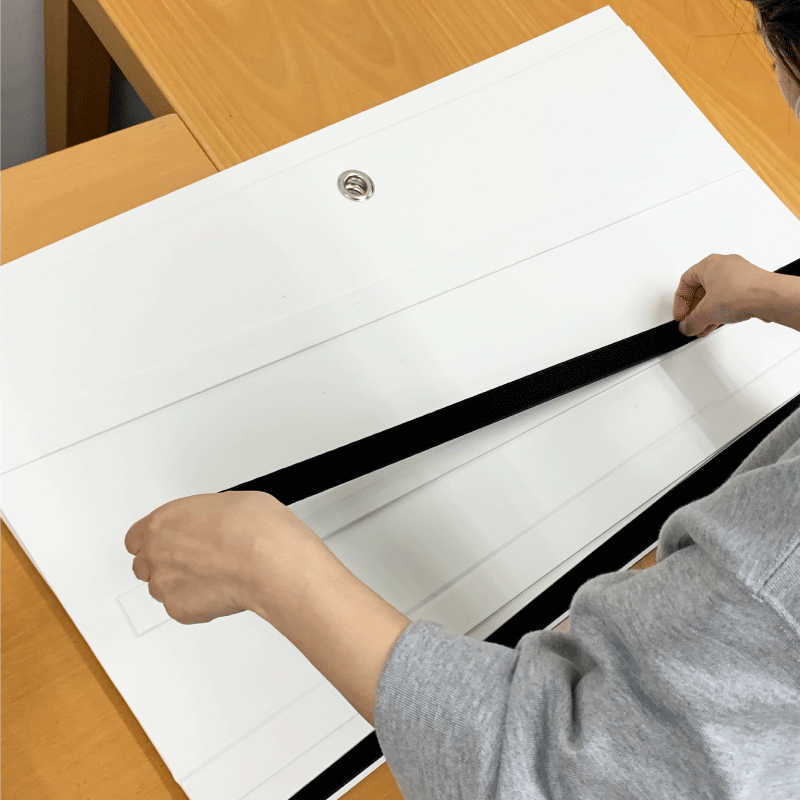 面ファスナーを取り付ける位置に先にマスキングテープを貼ってください。