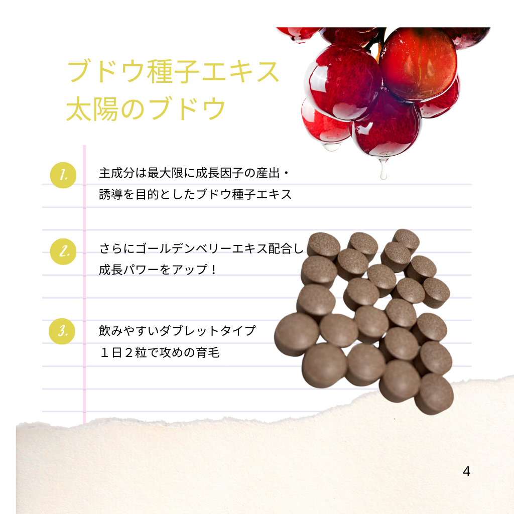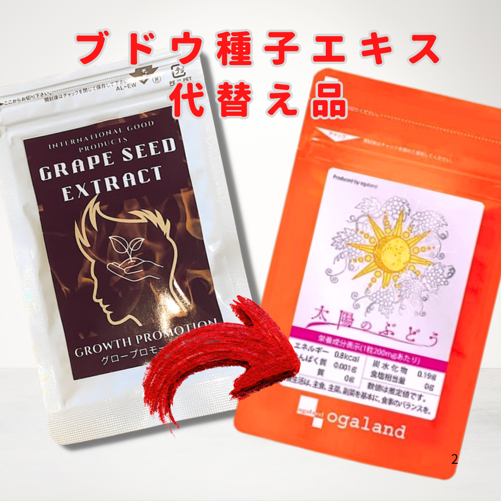 ブドウ種子エキスグロープロモーションは生産が終了致しました! 大変ご迷惑をお掛けしております。 そのため毎日の大切なブドウ種子エキスの摂取のために 代替え品をご用意いたしました! 今までより安くブドウ種子エキス (プロアントシアニジン)を育毛に活用して頂けます。