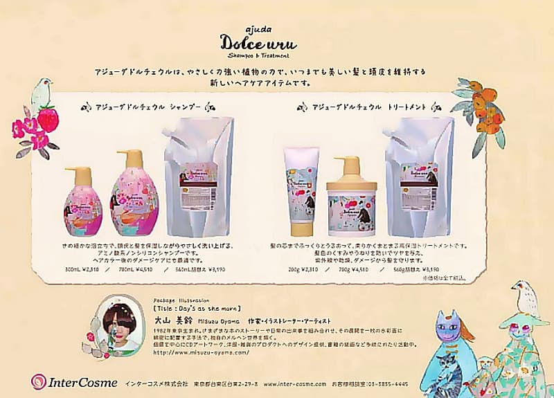 ■アジューダドルチェウル シャンプー300mL ¥2,310(税込)/700mL ¥4,510(税込)/560mL(リフィル) ¥3,190(税込)きめ細かな泡立ちで、頭皮と髪を保湿しながらやさしく洗い上げる、アミノ酸系ノンシリコンシャンプーです。ヘアカラー後のダメージケアにも最適です。