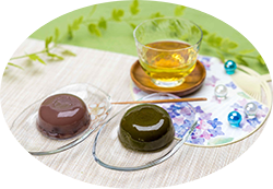 ひと口ごとに老舗の品格が広がります。抹茶水羊羹は、まろやかな餡に抹茶の渋みをきかせ、