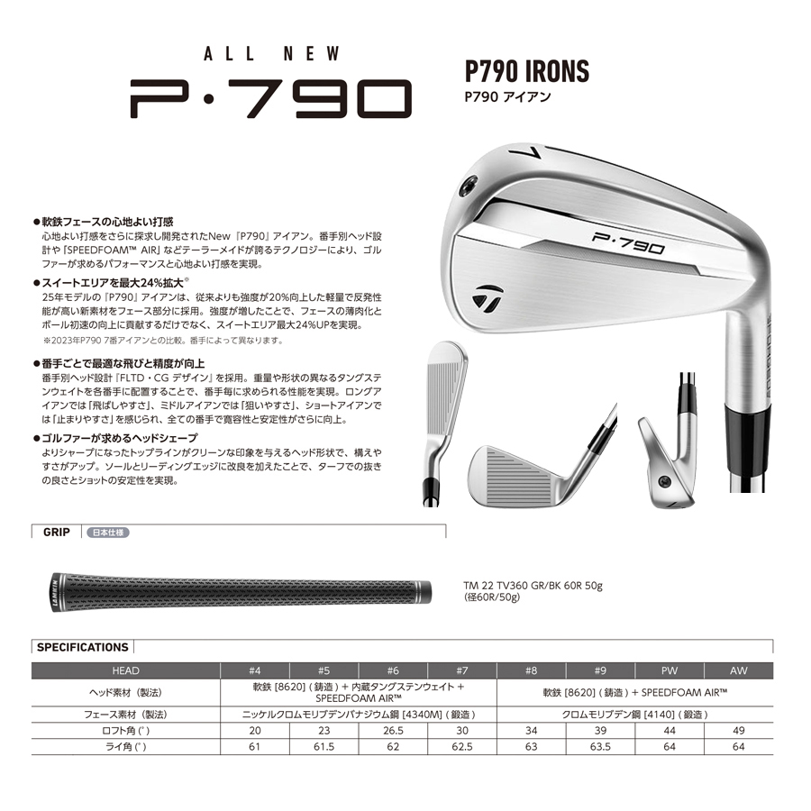 25年モデルの『P790』アイアンは、従来よりも強度が20%向上した軽量で反発性