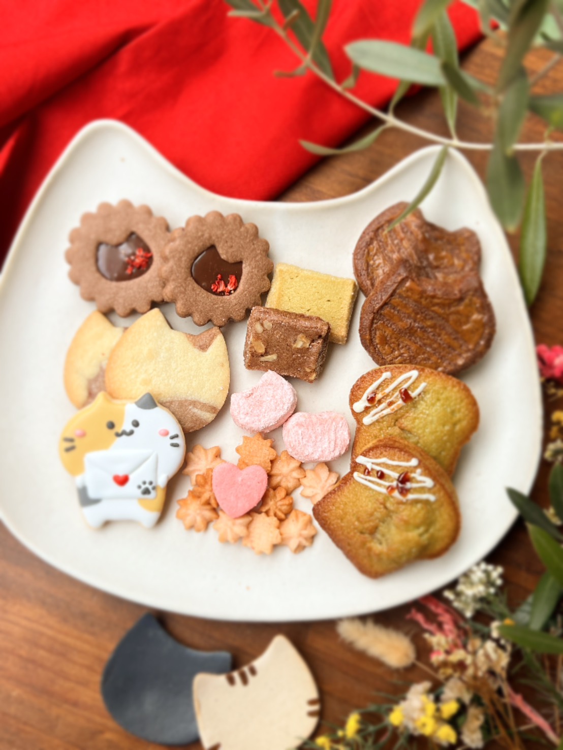 ★内容・ショコラガレットブルトンヌ(2個入り)・ピスタチオのフィナンシェ(2個入り)・アイシングにゃんこクッキー入り詰め合わせ(チョコサンドクッキー・ディアマンクッキー(ピスタチオ・ココアとくるみ)・苺スノーボール・苺しぼりクッキー・マーブルクッキー・ハートクッキー)