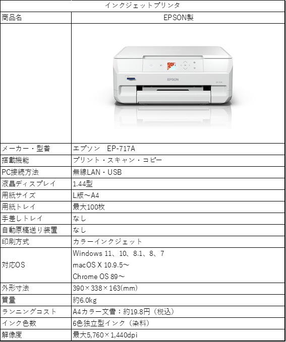 コンパクトサイズに高い基本機能を搭載したEPSON製のインクジェットプリンタです。 詳細のスペック情報は以下をご確認ください。 詳細スペック情報 ■プリンタ本体