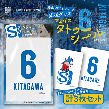 島根スサノオマジック応援グッズ フェイスタトゥーシール3枚入り №6 KITAGAWA 画像