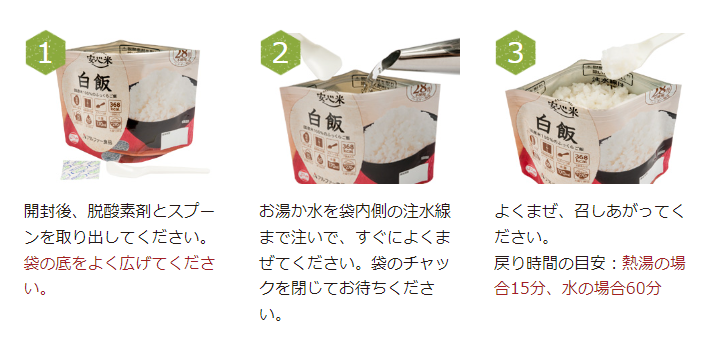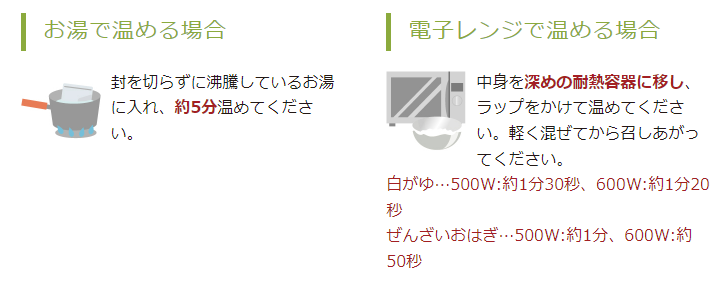 水なしで食べられるレトルトタイプ●白がゆ2食●ぜんざいおはぎ1食付属品●個包装スプーン3本