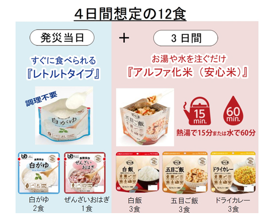 発災当日+3日間=計4日間を想定した長期保存食セットです。