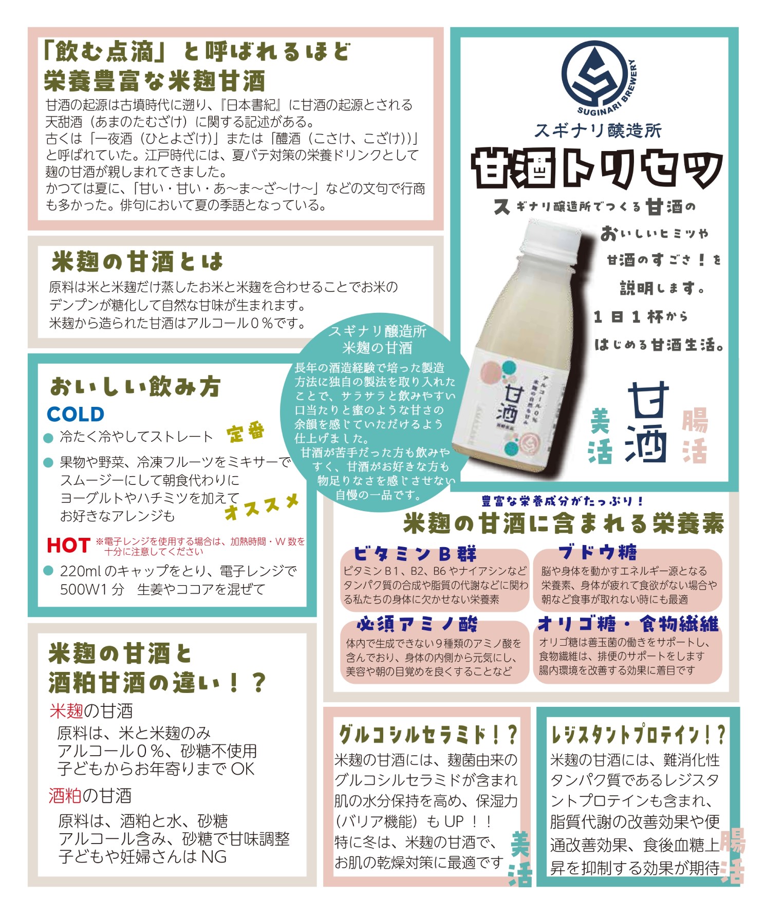 長年の酒造経験で培った製造方法に独自の技法を取り入れて仕上げた本物の甘酒。