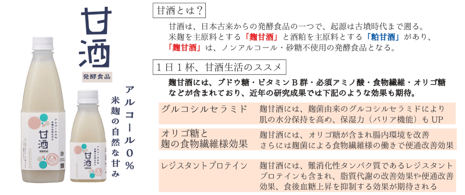 長年の酒造経験で培った製造方法に独自の技法を取り入れて仕上げた本物の甘酒。