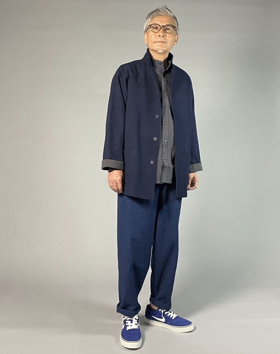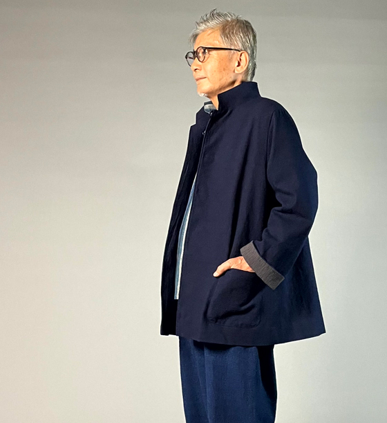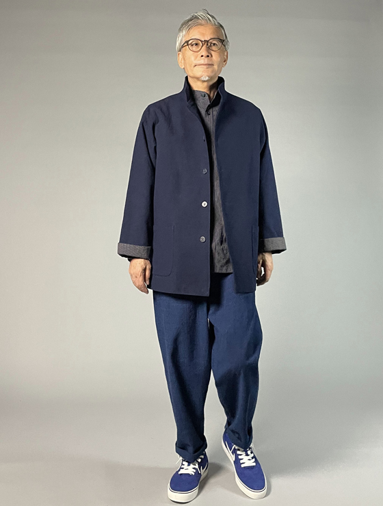 襟はシンプルなステンカラー。衿を立てても格好良く決まります。