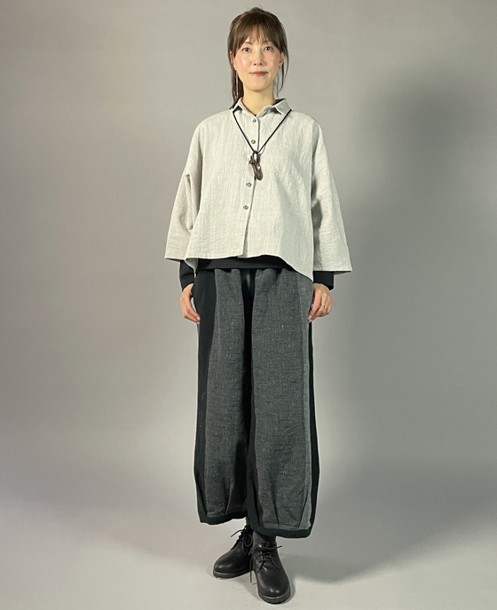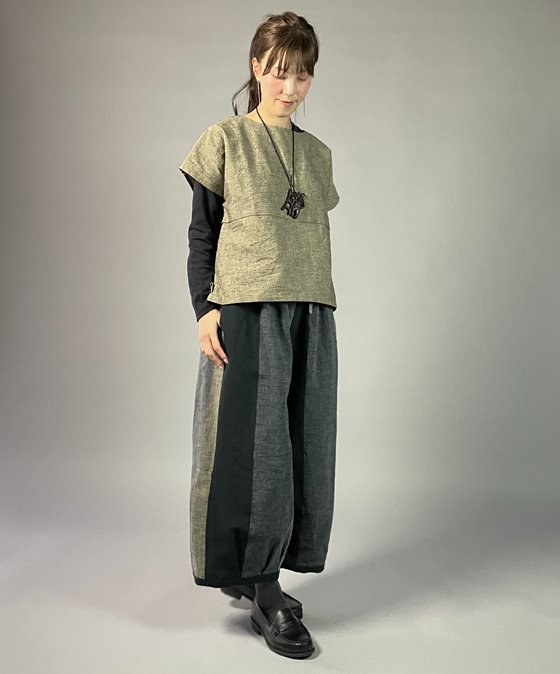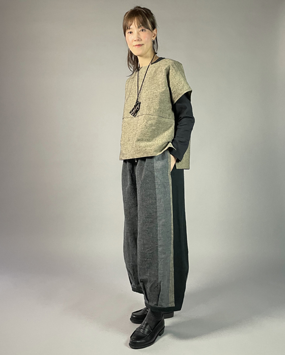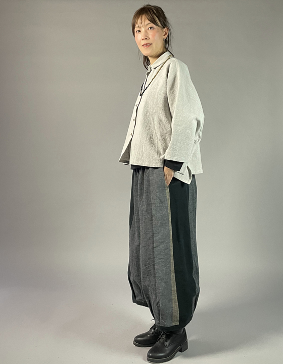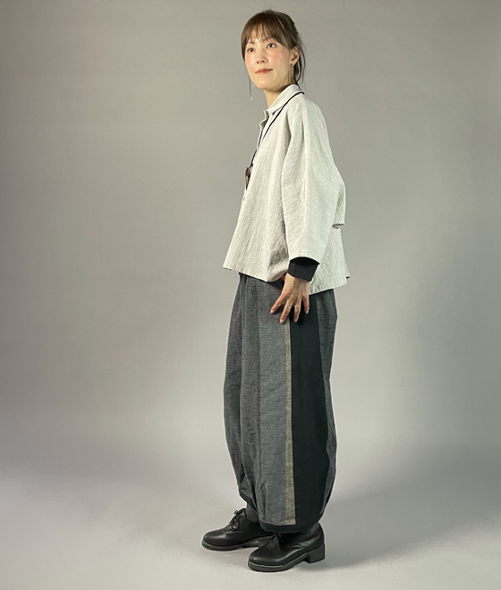 ゆったりと巾があり、裾を少し膨らませたバルーン感のあるデザイン。