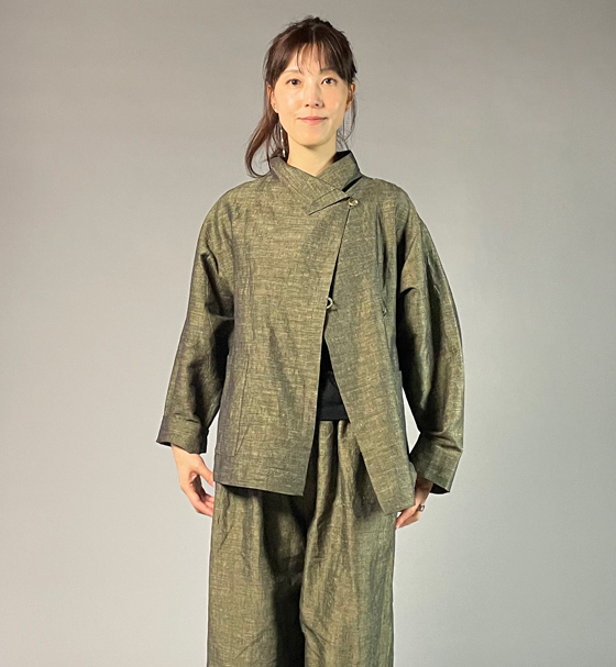 生地は遠州綿紬のきもの地。綿麻の少し光沢のある生地です。