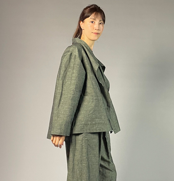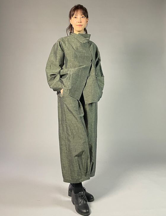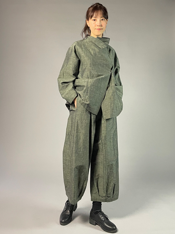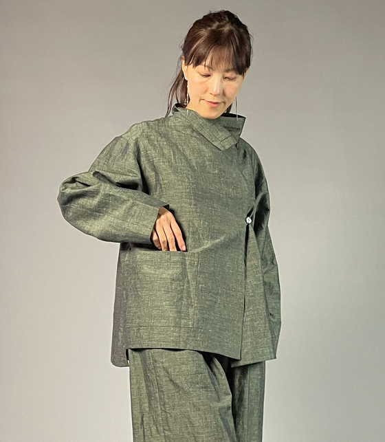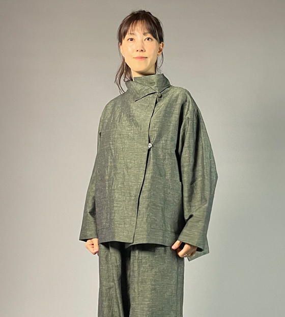 生地は遠州綿紬のきもの地。綿麻の少し光沢のある生地です。