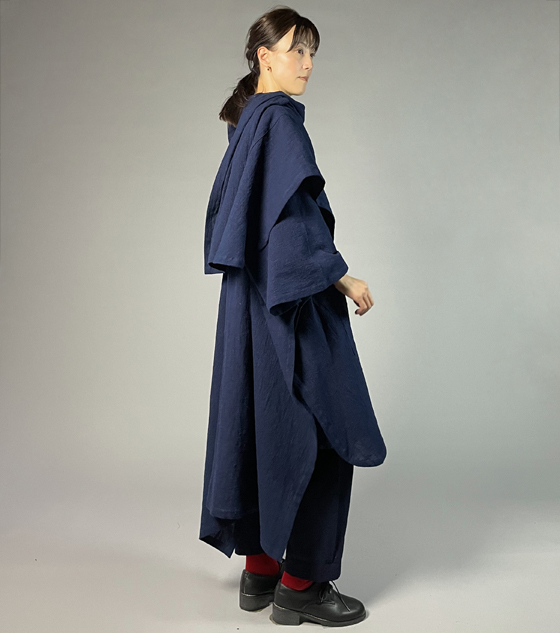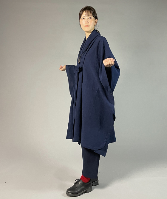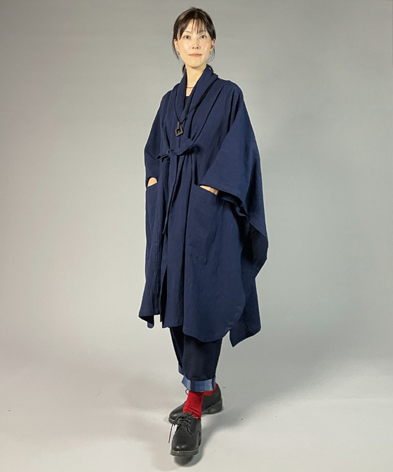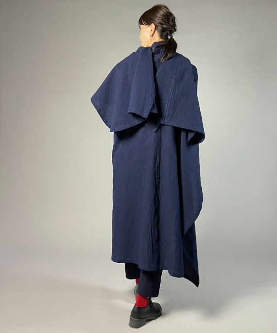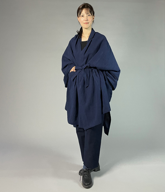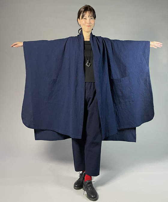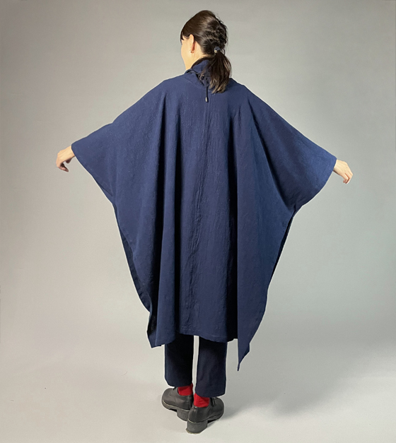 むささびのようなバックスタイル。こちらの袖幅、身幅ですと、着物のコートとしてもお使いになれますね。