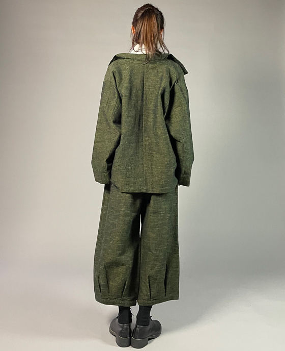 お揃いのワイドタックパンツと合わせてお洒落なセットアップに。