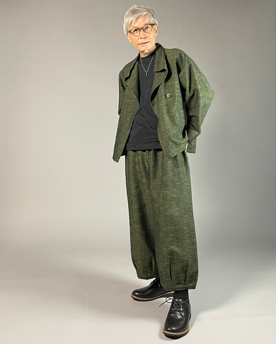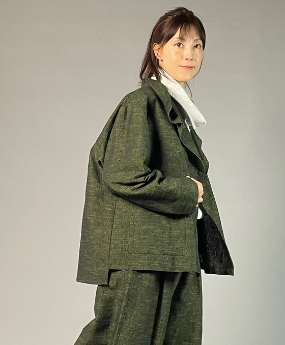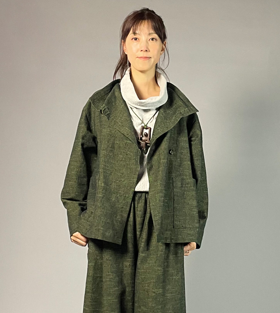 襟を色々な形に変化させて自分らしいお洒落を楽しんでいただけるフリースタイルジャケット。