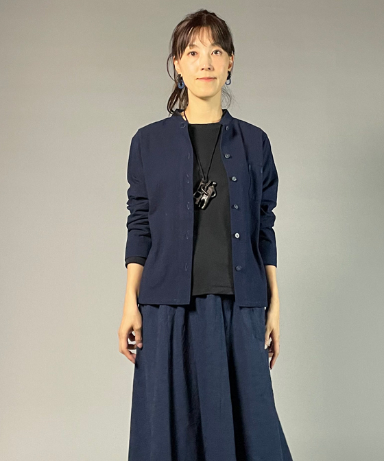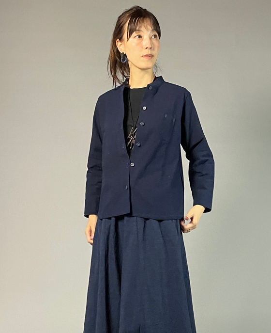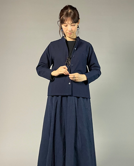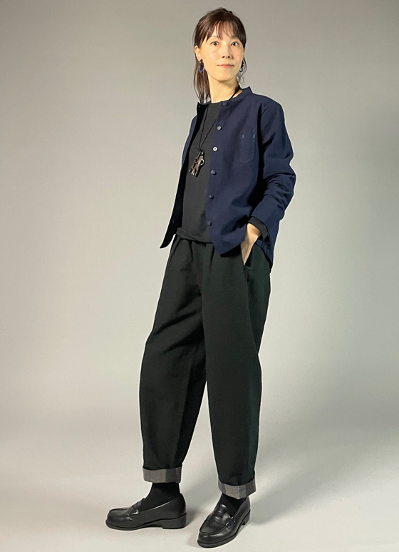ショート目の着丈なのでボトムとバランス良く合わせることができます。