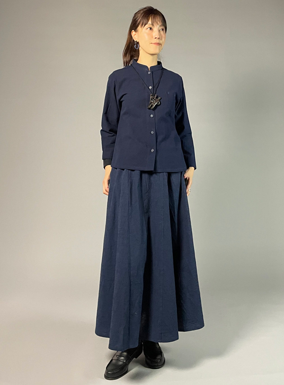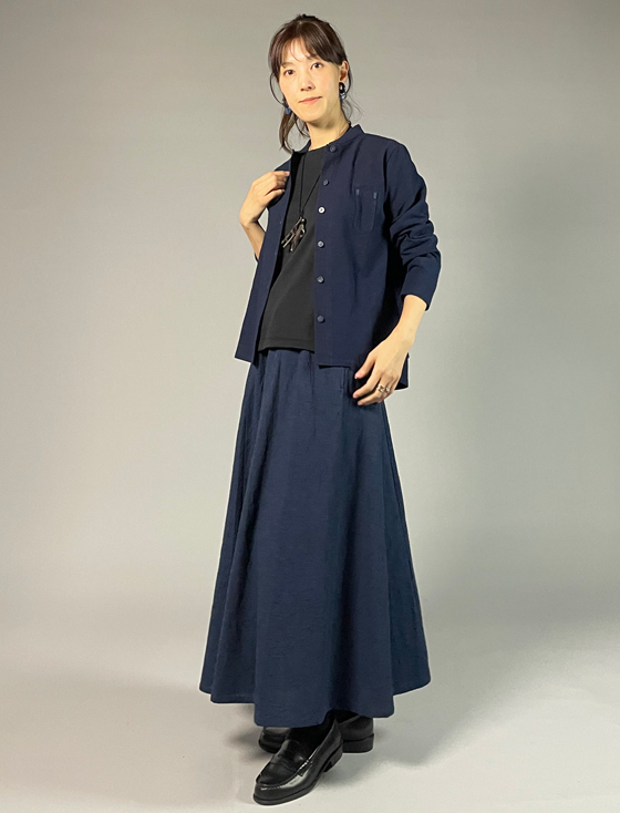 シンプルなデザインでどんなボトムスともコーディネイトしやすい、とても便利なアイテムです。