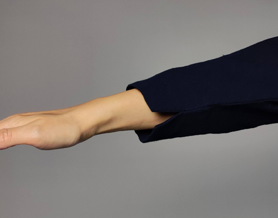袖下にスリットが入っていて折り返して長さを調整しやすくなっています。