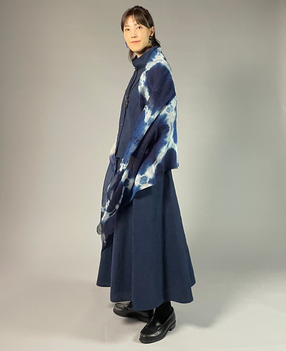 生地は新潟・亀田縞のワッシャー木綿。紺と黒糸の交織で、落ち着いた深い濃紺です。