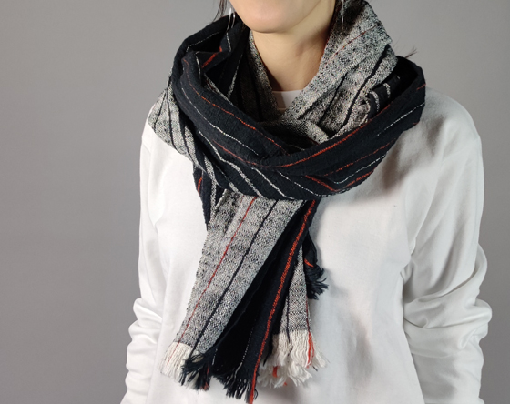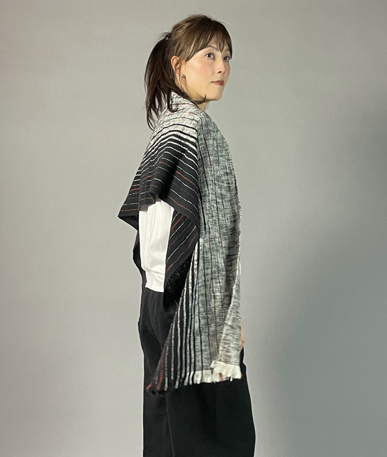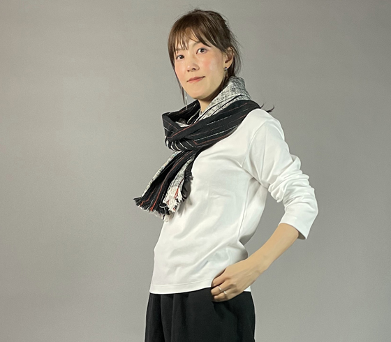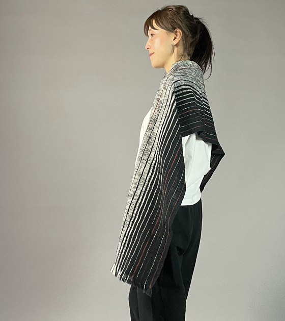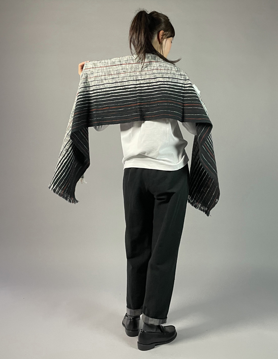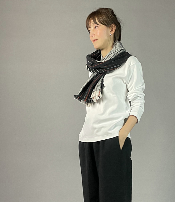 キモノ幅で織られていますが、肩にかけてもちょうど良い幅があり、