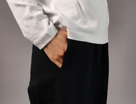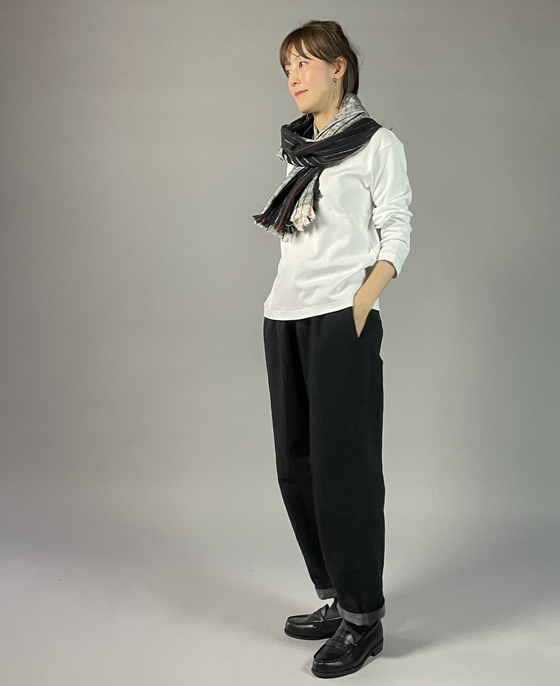 ベーシックなパンツでもこのような伝統工芸の生地でその良さと価値観を楽しむのも良いですね。