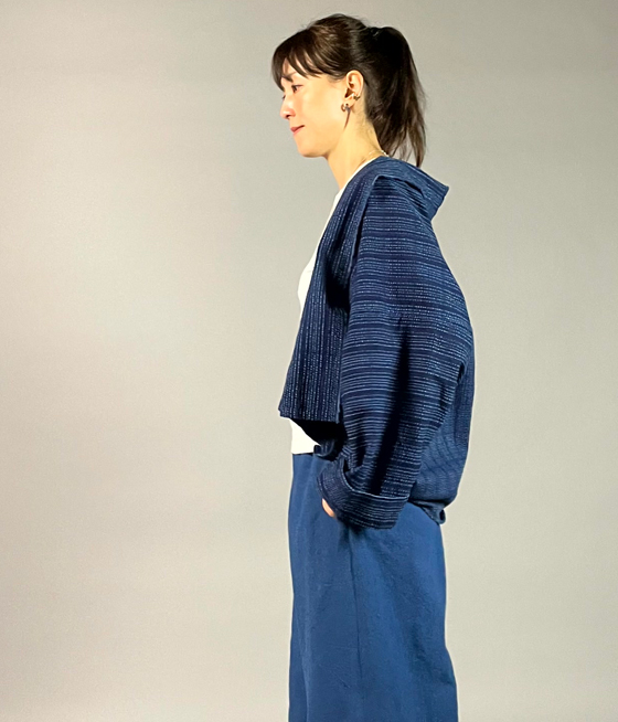 伝統的な着物の羽織を現代風にアレンジし、和洋混合にイメージされたショートジャケットです。