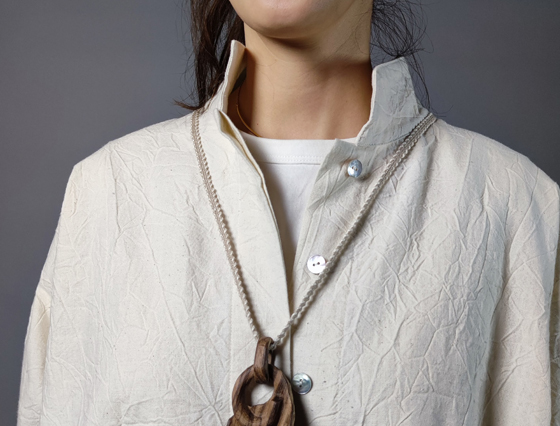 染織作家、小熊素子さんの*「きびそ」の手織りショールと合わせて。(30,800円税込み)