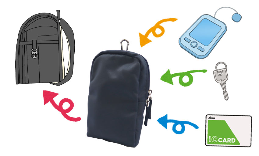 キッズ携帯やICカード、鍵などがまとめて収納できる