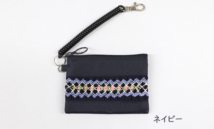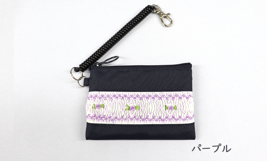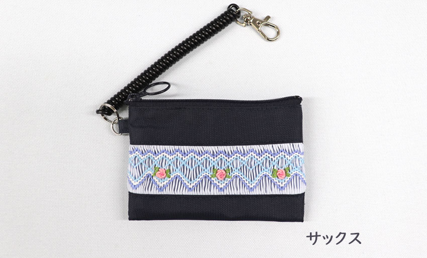 スモッキング刺繍入りのナイロン製パスケースです。