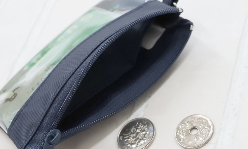 ファスナー式でICカードの紛失や小銭の落下防止にも。