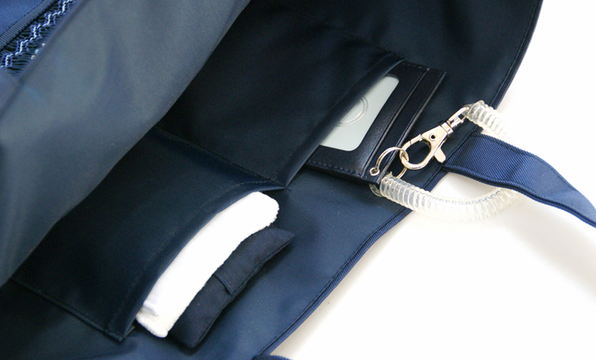 内ポケットにはパスケースやハンカチセットも分けて入れられます。