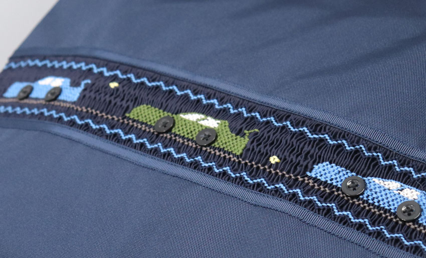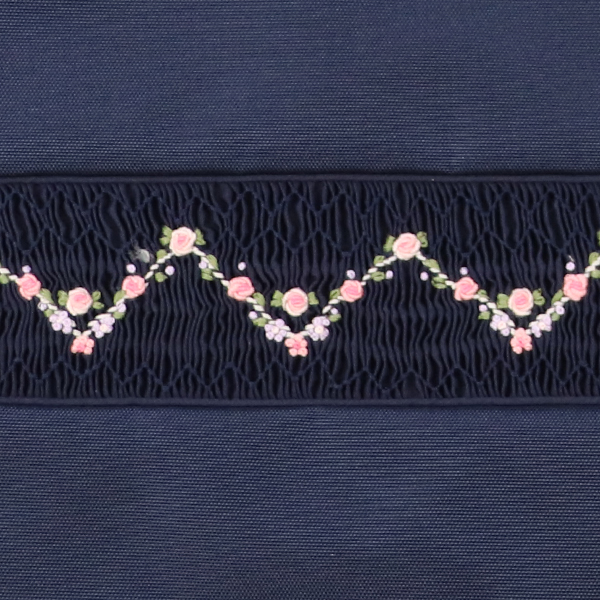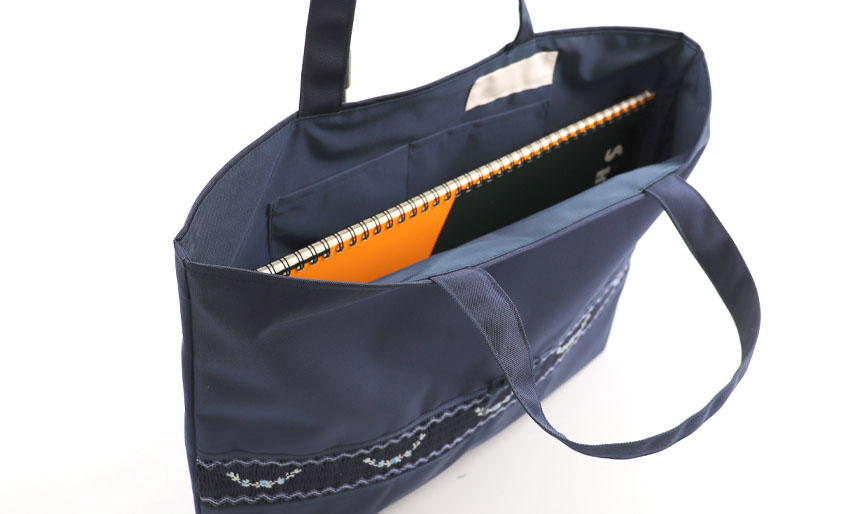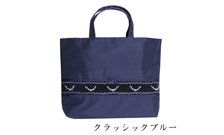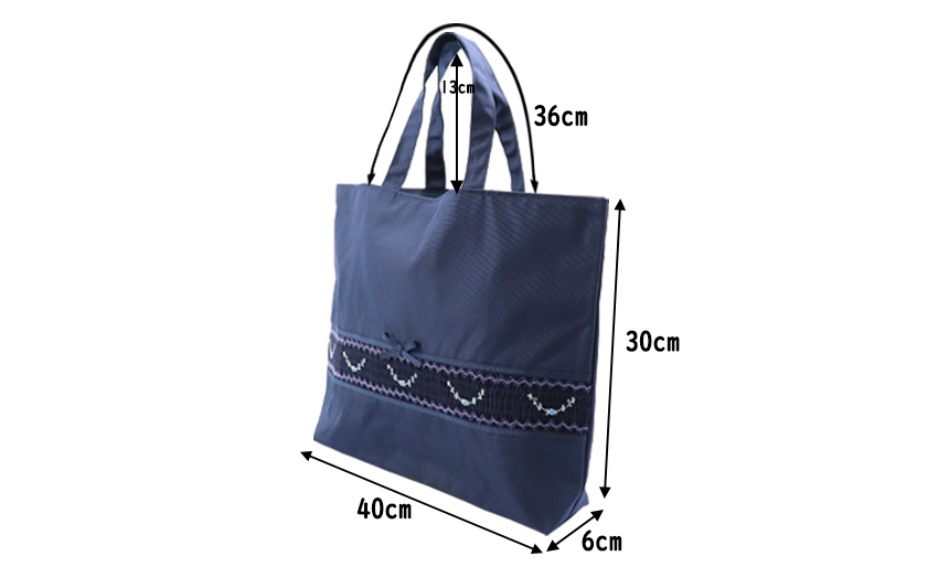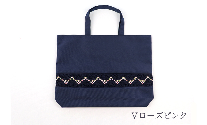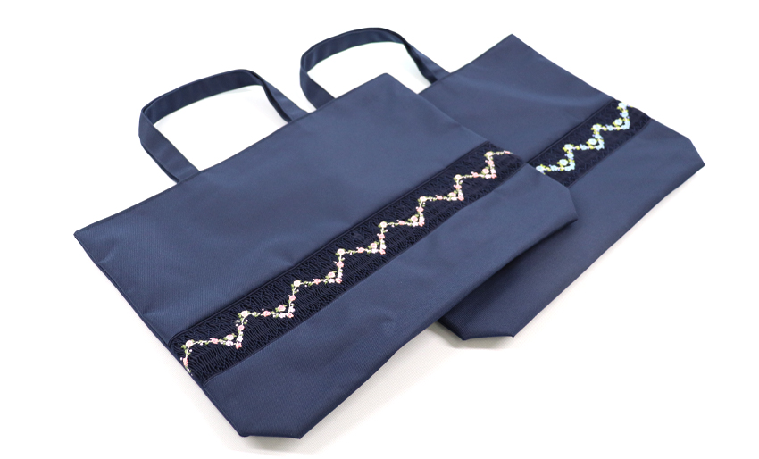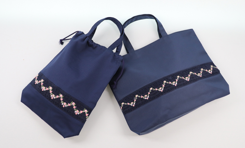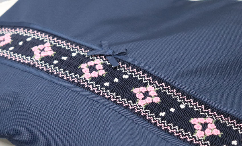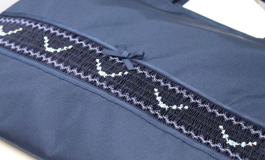 美しいスモッキング刺繍入りのレッスンバッグ。