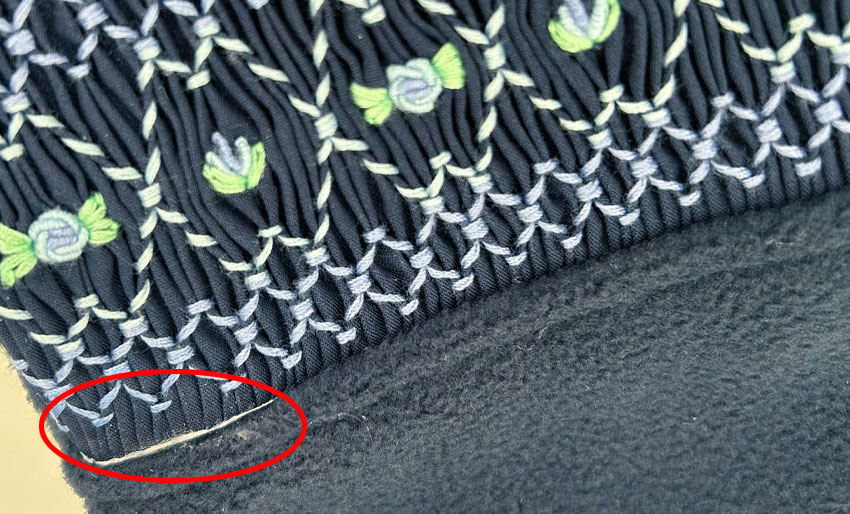 スモッキング刺繍部分の白いテープが見えているため20%OFFにてご購入頂けます。在庫1点限りです。